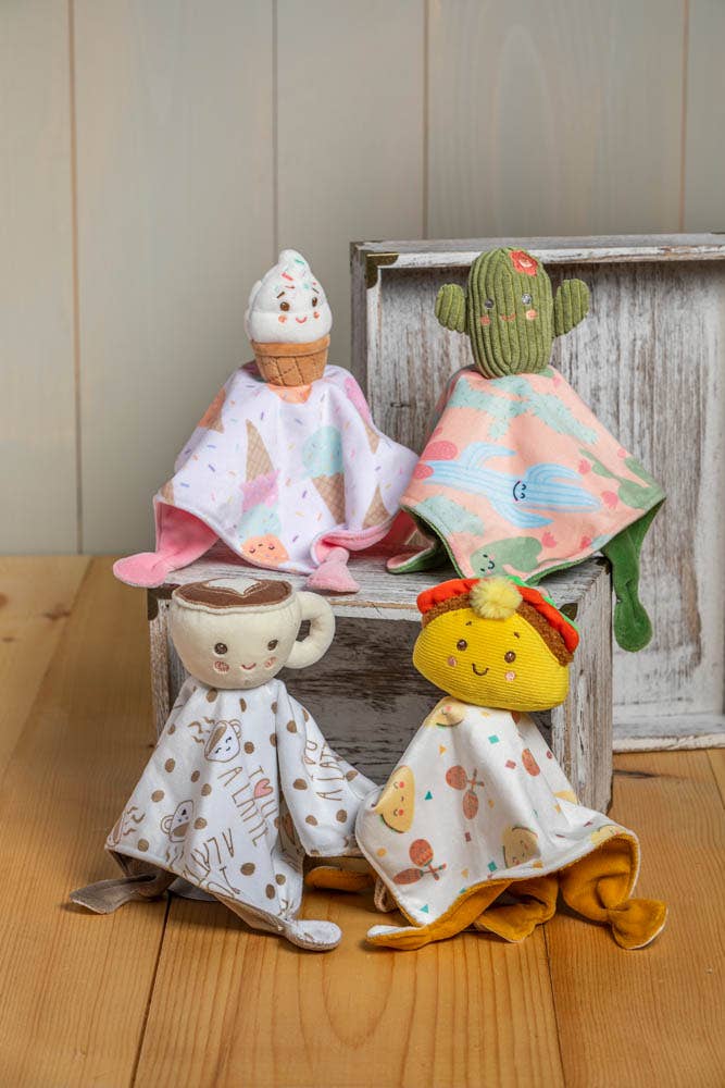 Cactus Sweet Soothie Blanket. As much fun for Mom as for baby, Sweet Soothies combine familiar everyday objects with sweet smiling faces to give them personality. Fun prints that help tell the story. Soft velour printed front and solid color backside. Pinched corners complete the look.