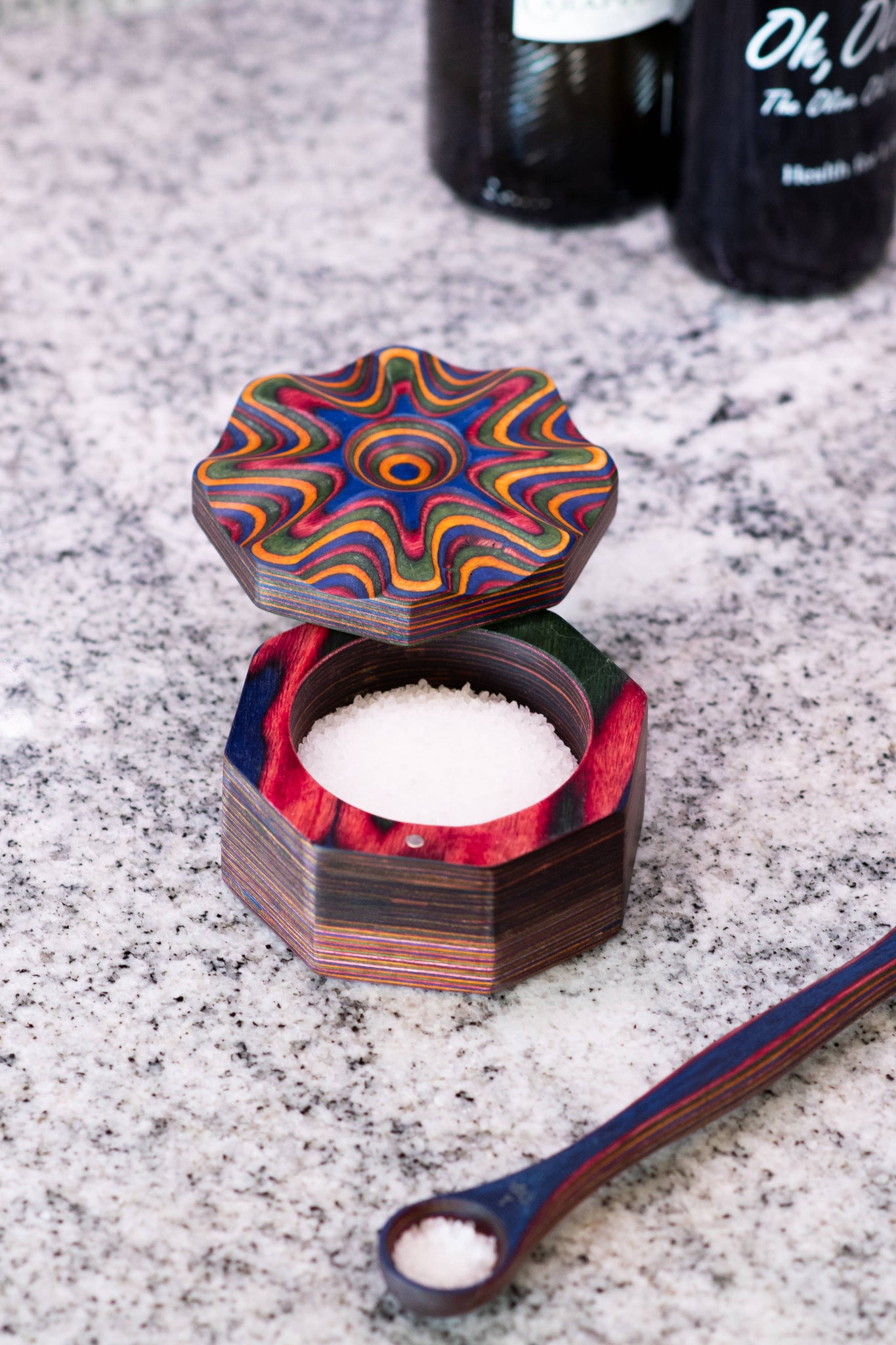 These wood utensils are made with 100% pakka wood. Layers of food safe, colored material make up these unique wood kitchen tools. Care instruction: hand wash only. Fda approved. Approved for heat up to 450 degrees.