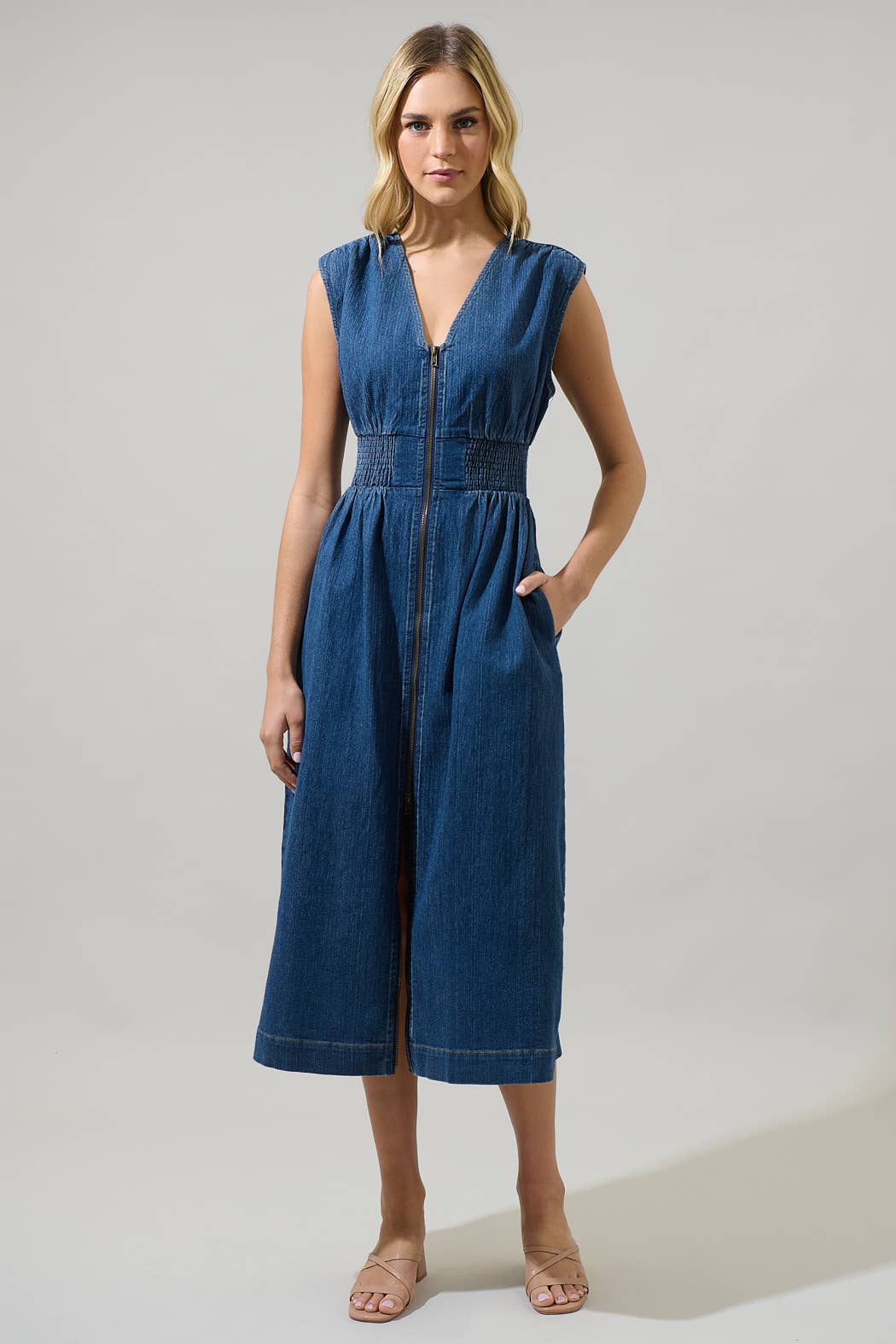 Gabriella Denim Lula Sleeveless Smocked Midi Dress